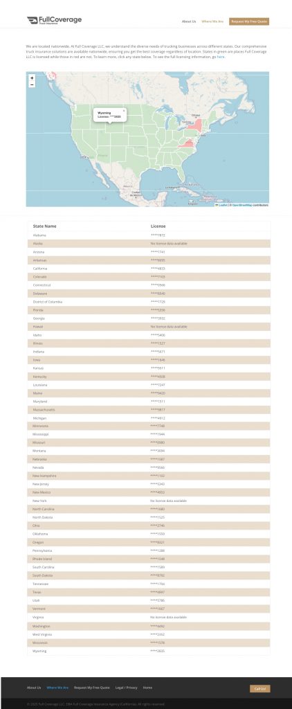 Built a custom plugin that utilizes the Leaflet map API alongside a custom post type to draw and populate a U.S. map that shows states where Full Coverage is licensed to do business.