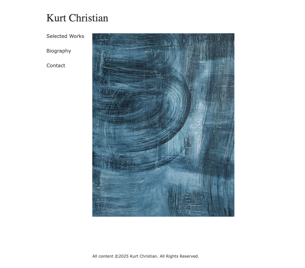 Kurt Christian is an American painter currently residing in the New York metro area. This site is an archive of Kurt’s paintings and biographical and contact information. The site was originally launched in 2014 and has been updated numerous times in the years since with fresh works and new biographical details.