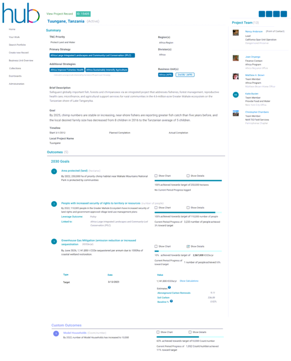 We built a zero to launch platform, called the Conservation Hub, that would aggregate conservation data to allow TNC staff to better understand the global impact our conversation work had on our 2030 goals. Key functions of the Hub include: