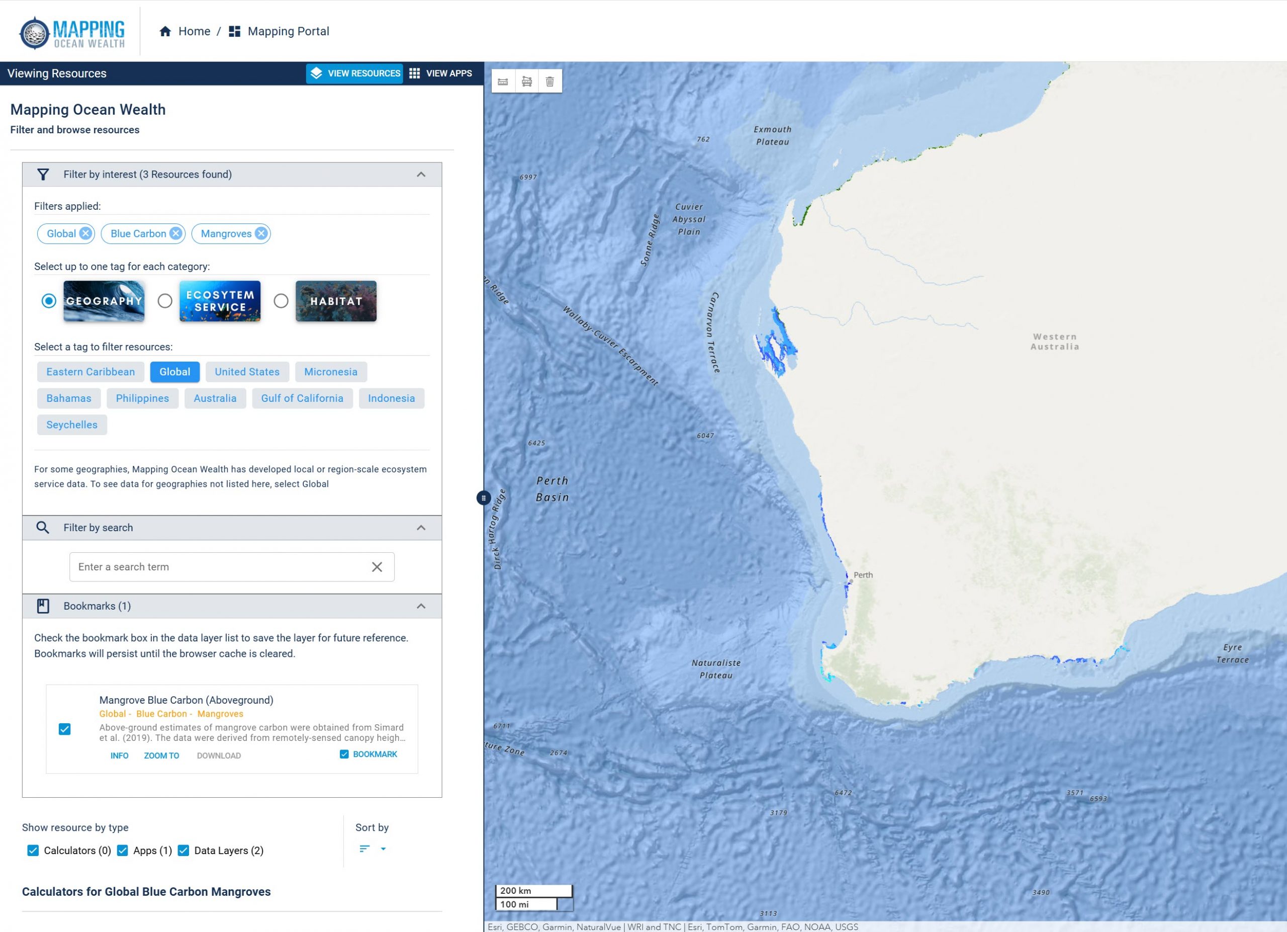 Overview: The Ocean Science team needed a map-based collection of datasets and tools to promote a shared understanding of the value of marine and coastal ecosystems.